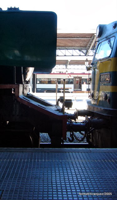 Una imagen impagable de las tres tracciones ferroviarias. Confe, Alco diesel y al fondo, unidad eléctrica. Aranjuez, 2005 (Foto: Ángel Rivera)