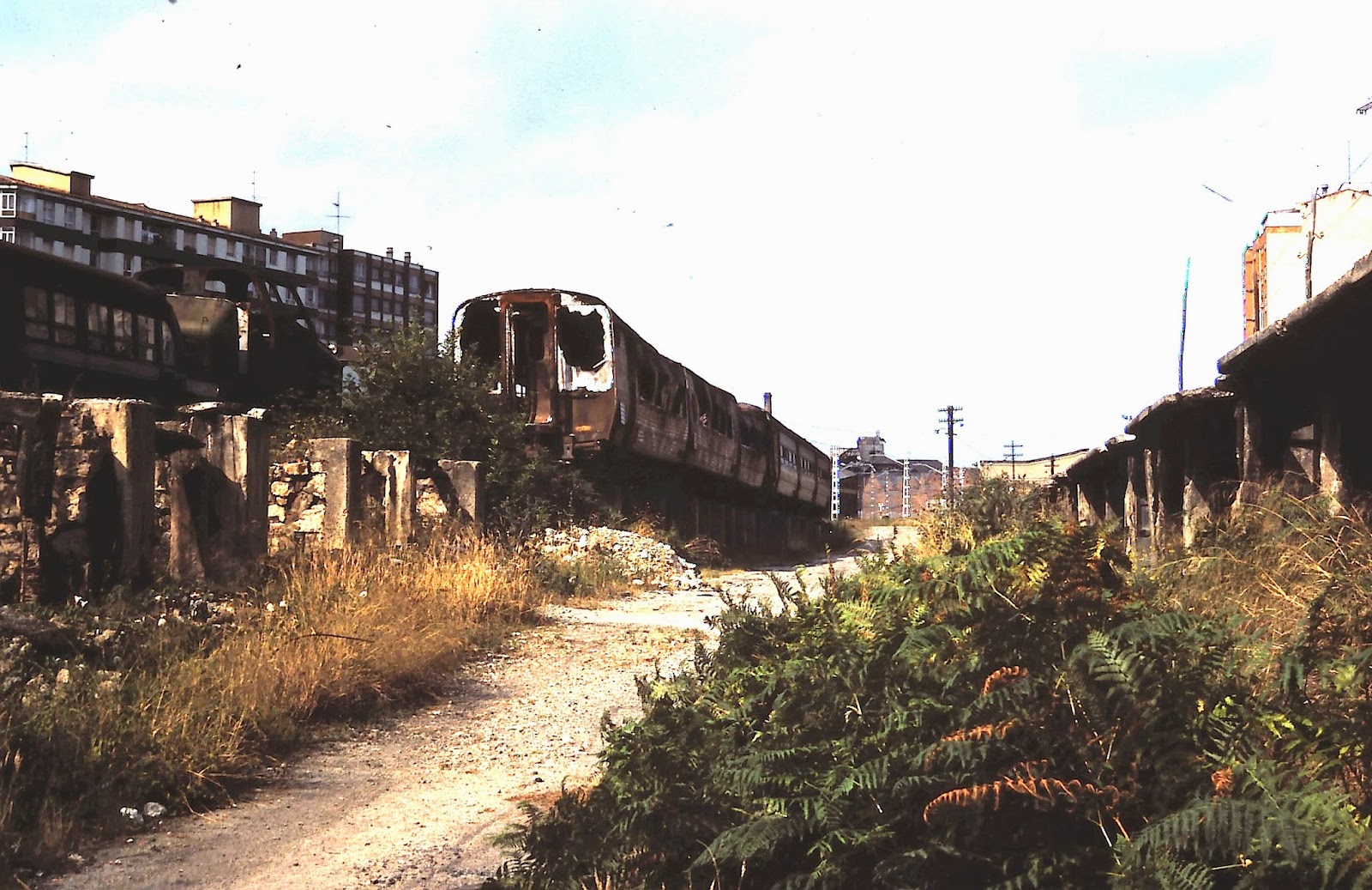 Lo que quedaba del "talgo" en el verano de 1985 ¿Será posible que no se haya podido conservar en el Museo de Asturias ninguno de sus coches? (Foto: Ángel Rivera)