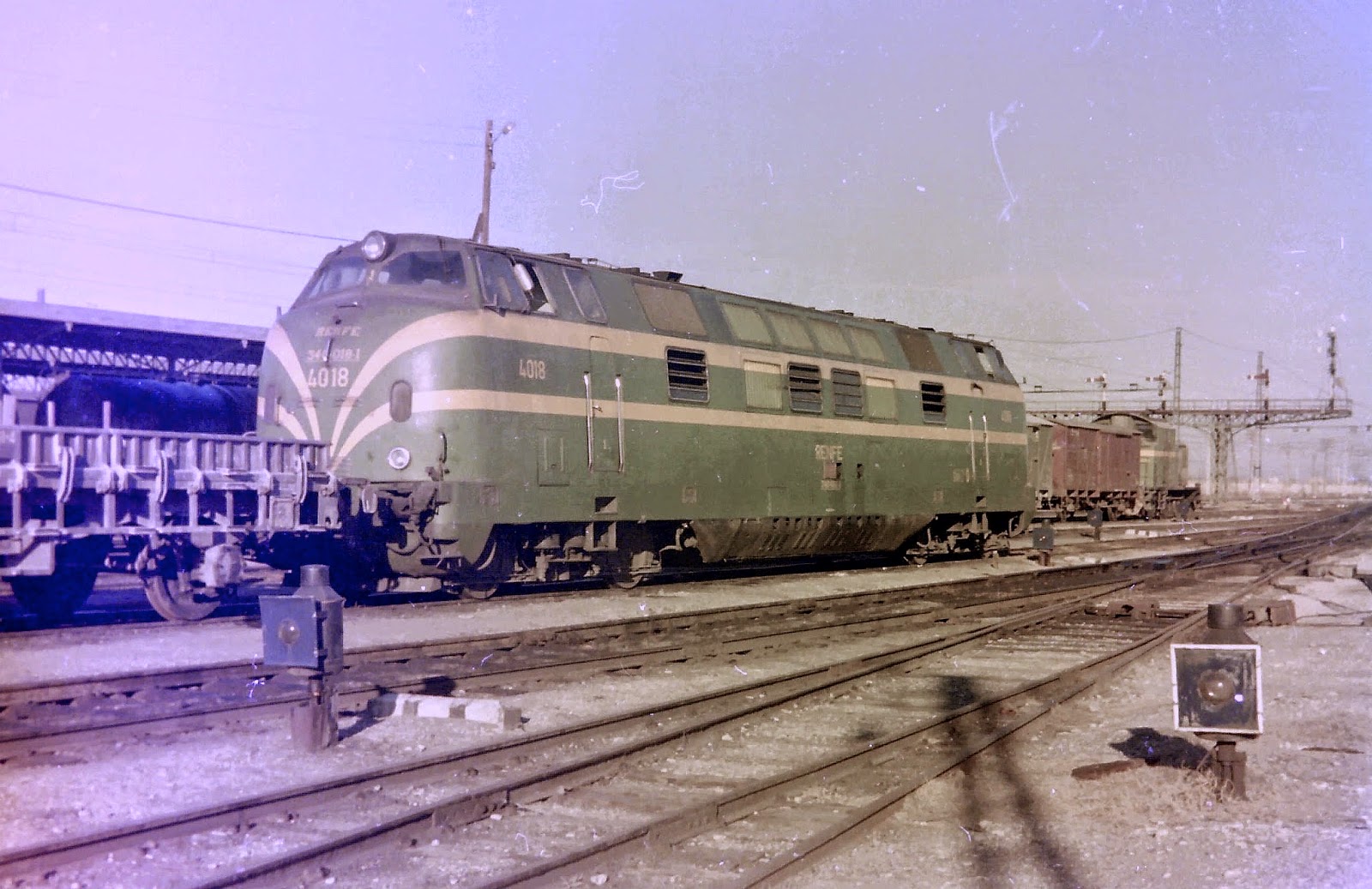 Cuando me retiraba de allí oí el ruido inconfundible de los motores de una 4000. En efecto, llegaba la 340-018 creo que en dirección Ciudad Real-Madrid, arrastrando unas cuantos vagones plataformas. Que poco podía imaginar yo en aquel momento que aquellas hermosas cuatromiles, al igual que las Mikado, tendrían también una vida muy corta...¡también 20 años! y no por su indiscutible calidad sino por no haberlas elegido adecuadamente para los servicios que debían realizar. ¡Cuanto esfuerzo y dinero perdido!