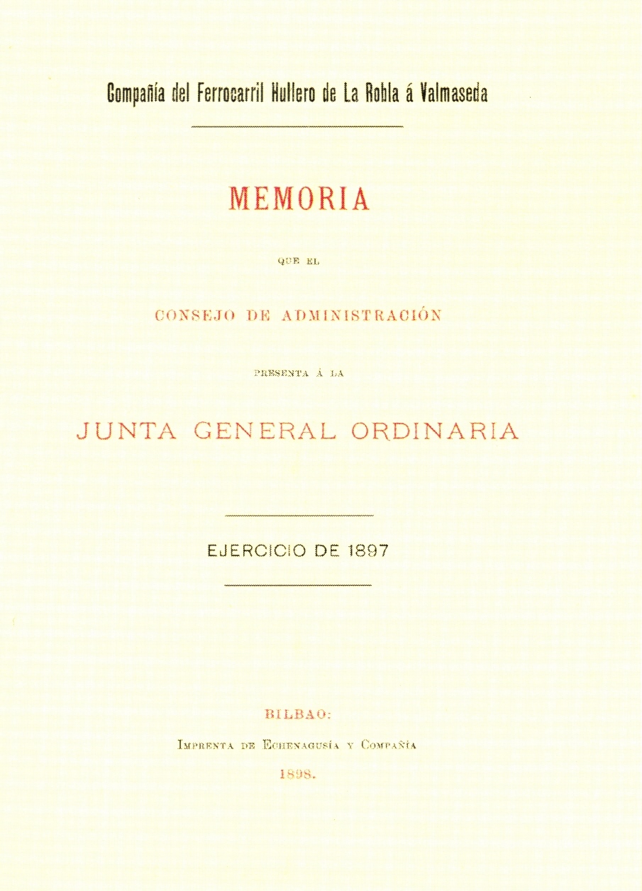 Memoria de la Compañía del Ferrocarril Hullero de La Robla a Valmaseda. Archivo EuskoTren/Museo Vasco del Ferrocarril