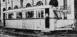 | Un "gorrinillo" en la estación del Norte de Madrid, esperando seguramente su traslado al Museo del Ferrocarril (foto de autor desconocido) |