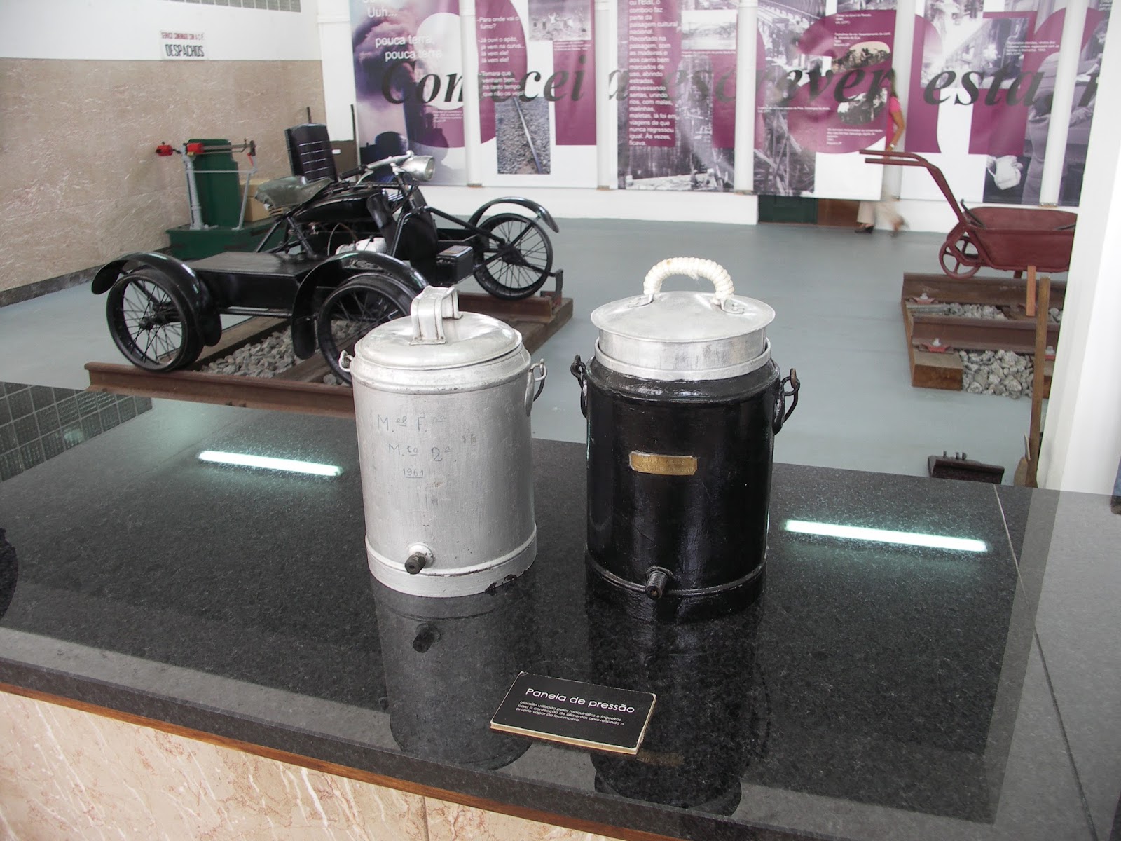 Ollas ferroviarias utilizadas por los ferroviarios portugueses y hoy expuestas en el museo del ferrocarril de Entroncamento. Fotografía de Juanjo Olaizola Elordi