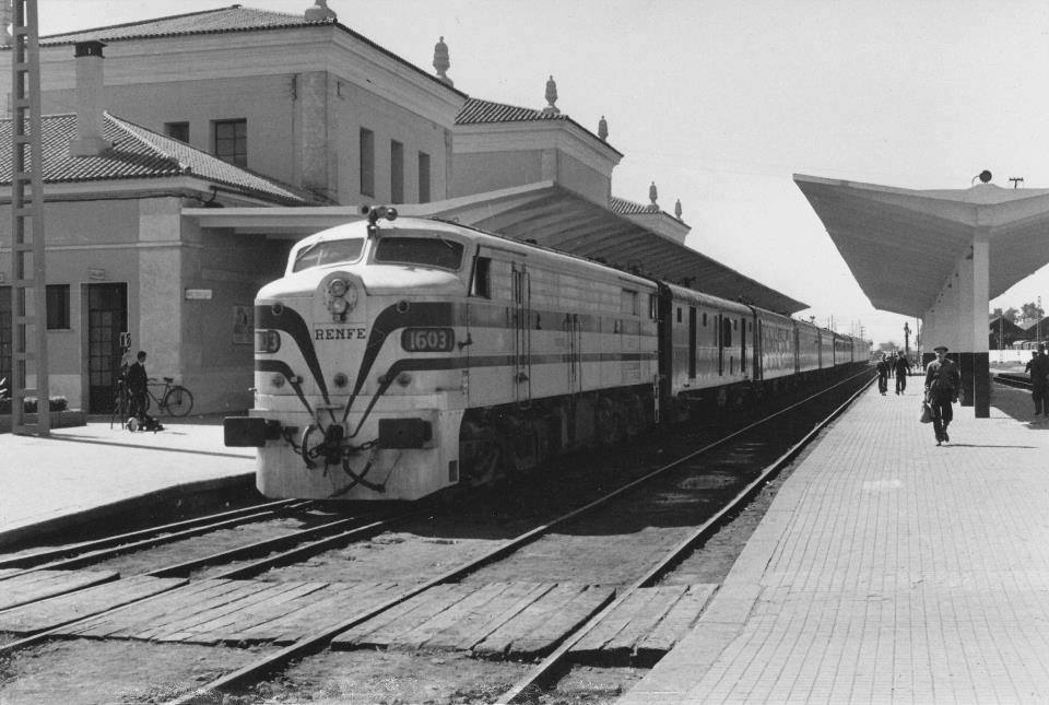 Hasta 1954 las únicas locomotoras diesel de línea en RENFE eran las cuatro del Talgo II, de no mucha potencia, pero suficiente para arrastrar un tren tan ligero. Eso sí, estaban dotadas de una gran elegancia y poseían un silbato-sirena que para mí es uno de los mejores sonidos del ferrocarril español. Pero ya llegaremos a eso en otra entrada.