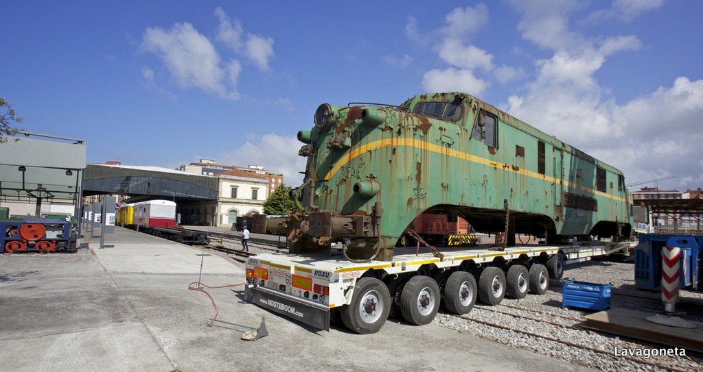 | Llegada de la 7747 al museo en Gijón (Foto: La Vagoneta) |