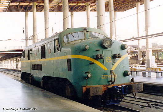 Se trataba de la 7706 que durante algún tiempo, a mediados de los 90, estuvo en Madrid-Atocha haciendo maniobras, probando enganches y remolcando de vez en cuando al "Tren de la Fresa".