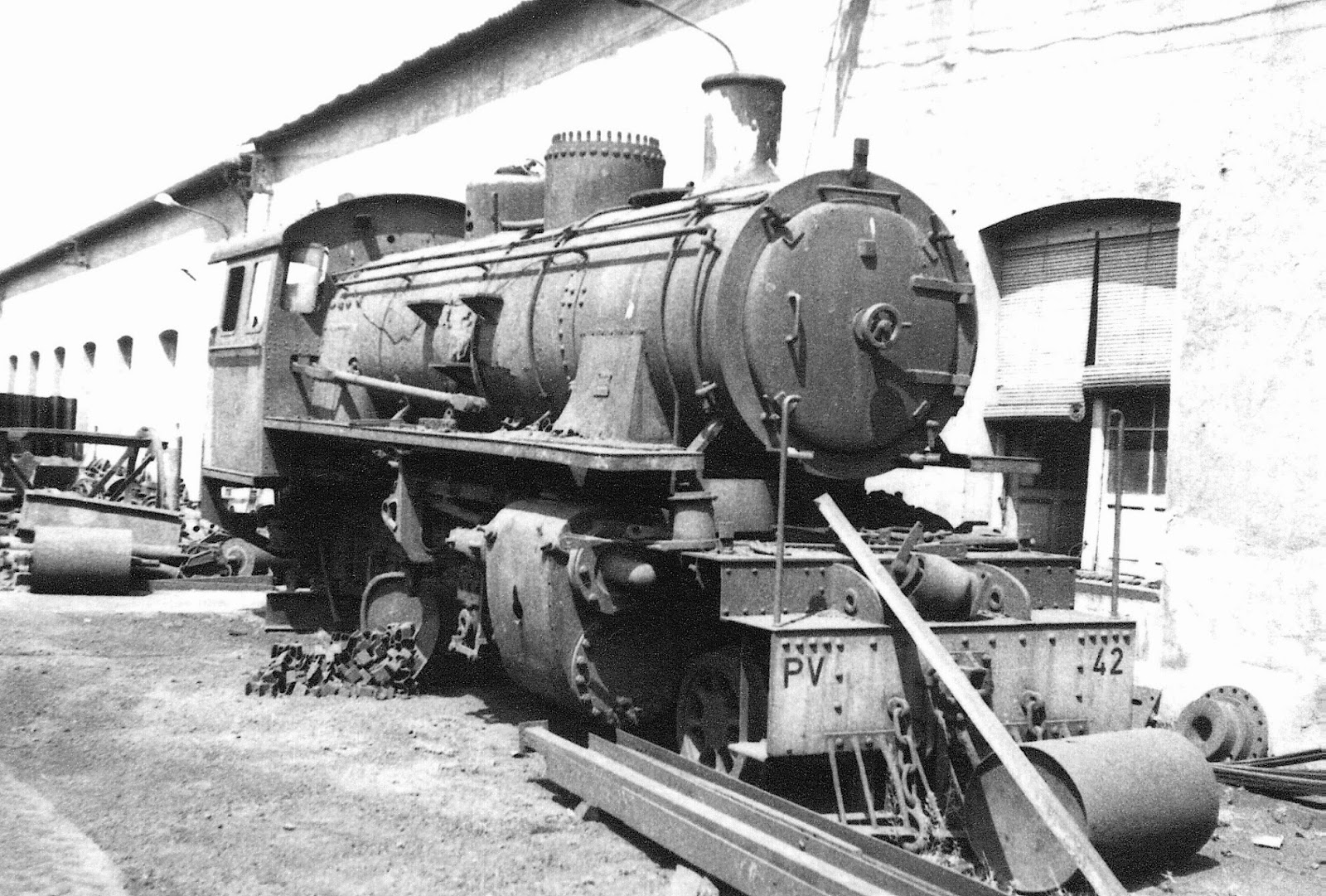 La 42, al igual que su hermana la 41, fueron adquiridas en 1950 por ENDESA a la casa Tubize de Bélgica para transportar vagones de carbón entre la línea del PV y la central "Compostilla I" y posteriormente en la "Compostilla II". En 1969 las cedió al PV aunque creo que su trabajo fue el mismo. La 41 estuvo operativa hasta mediados 80 mientras que la 41 -la que aquí vemos- dejó de prestar servicio a comienzos de los 70, sirviendo de piezas de recambio a su compañera.