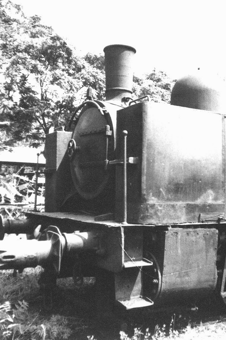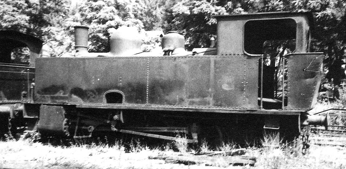 Las dos fotos que vienen a continuación, creo que pertenecen a la número 21. Fabricada por la casa Borsig en Berlín en 1902, había pertenecido con el nombre de "Ribadeo" al ferrocarril de Villaodrid a Ribadeo pasando al PV en 1930. Dicen las crónicas que fue desguazada a principios de los 80...pero muy a finales de los 70 ya se encontraba en este estado:
