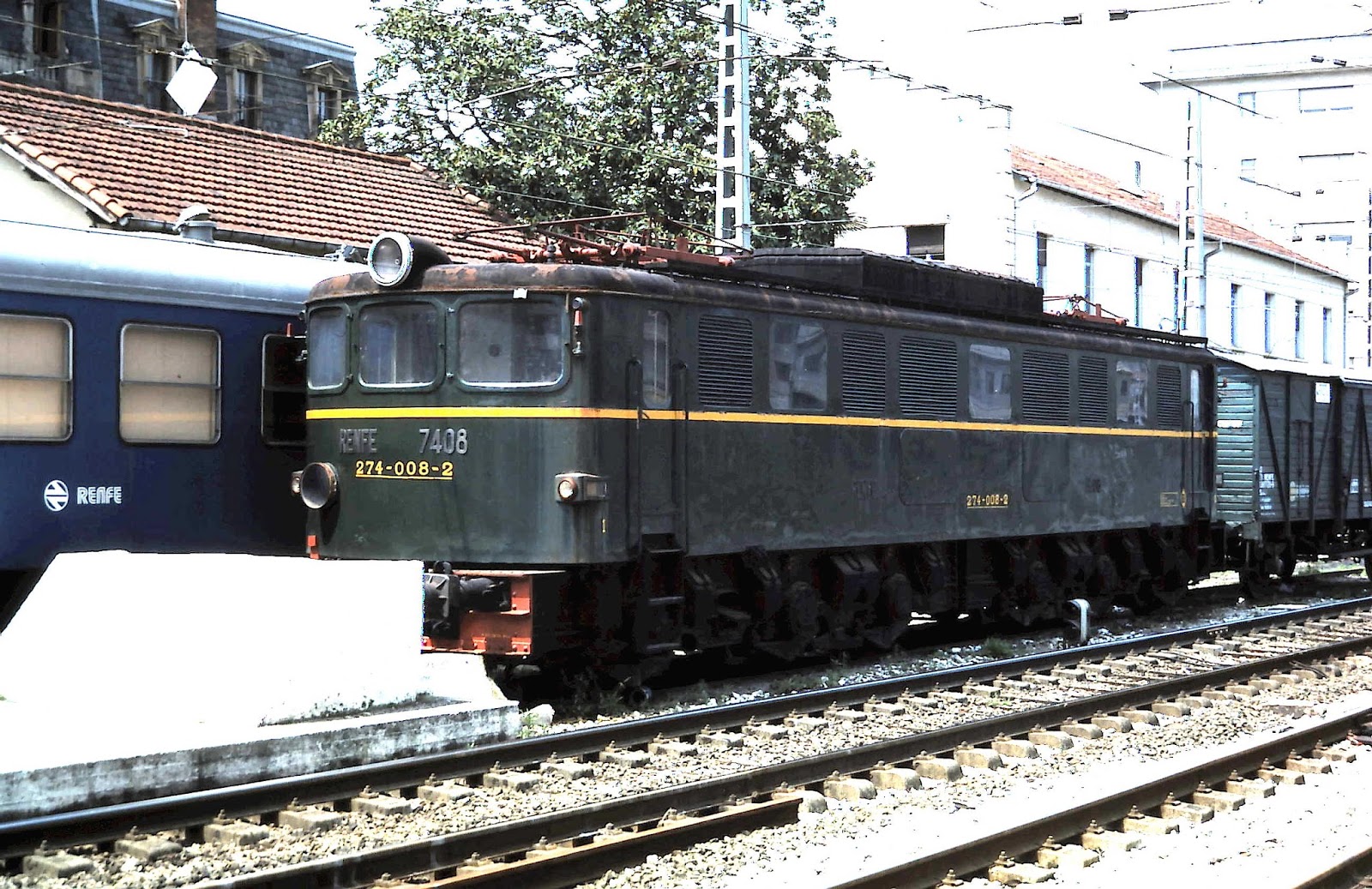 Vi por primera -y tardía- vez una 7400 apartada en la estación de San Sebastián en mayo de 1988. En aquella época no conocía casi nada sobre esas locomotoras, pero sí tenía la sensación de que esa serie había sido retirada hacía ya unos años. Pensé por tanto que estaba destinada al Museo Nacional Ferroviario y me alegró ver su buen estado de conservación, al menos en su exterior. Años después, y una vez más, esta locomotora sería desguazada.