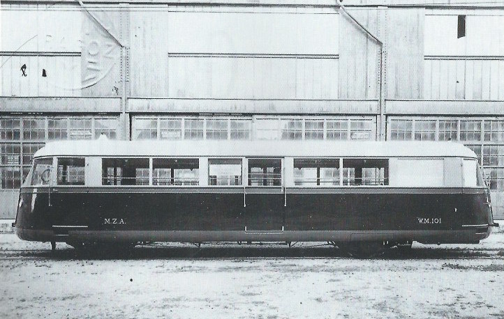 Pues bien, estos cucarachas -o cucarachillas, como más cariñosamente los llamaría yo- fueron encargados en 1935 en número de cuatro por la M.Z.A. a la Compañía de Material Móvil y Construcciones (MMC) de Zaragoza, en una época, los años 30, en que muchas compañías buscaban cómo rebajar sus déficits de explotación, sobre todo en los servicios de viajeros de sus líneas secundarias. Su diseño correspondía al modelo ZO presentado pocos años antes en Francia por la compañía Renault. Disponían de un motor diesel Renault de 110 CV que le permitía desarrollar una velocidad máxima de 90 km/h y su capacidad era de 39 plazas. Su librea original fue roja y gris. M.Z.A. los matriculó como W.M. 101 a 104.
