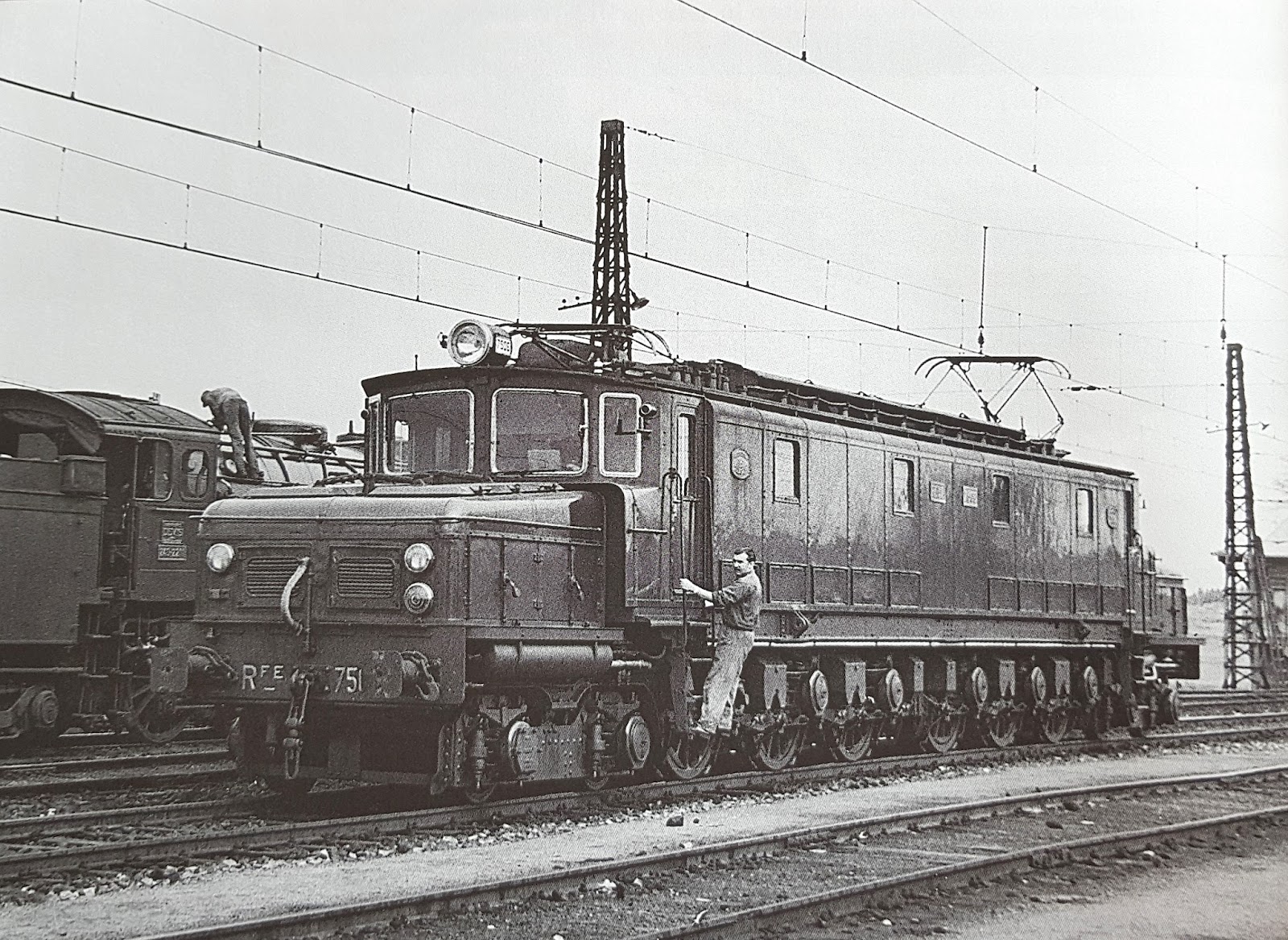 Las 12 locomotoras de la serie 7500 fueron construidas entre 1944 (7501 y 7502) y 1945 (7503 a 7512) por la Compañía Auxiliar de Ferrocarriles (CAF) a raíz de un pedido efectuado por la casi recién creada RENFE. El proyecto original provenía de la Compañía del Norte que, tras el éxito de las 7200 en sus líneas electrificadas del País Vasco, buscaba otra serie de locomotoras de características parecidas y también trabajando a 1500 V para la prevista electrificación de los servicios entre Madrid, Ávila y Segovia a través de la Sierra de Guadarrama y con fuertes pendientes. A esa demanda se adelantó en su momento la Sociedad Española de Construcción Naval (SECN) con el prototipo que fue la 7301, de la que ya me ocupé en una entrada anterior. Sin embargo, su complejidad en la parte eléctrica y los problemas de conducción que presentaba, junto con el advenimiento de la Guerra Civil, hizo que no se siguiera con esa solución y se optara por otra que, en el fondo, no era sino la de contar con unas 7200 más "jóvenes" y algo más potentes.