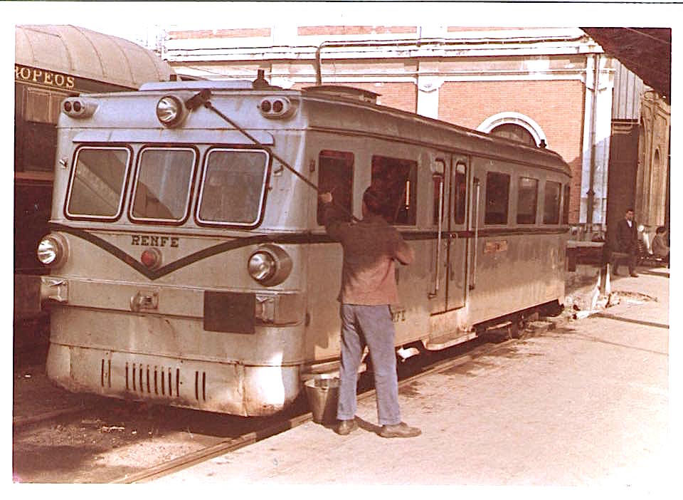 Adecentando al 9022, también en Sevilla. Obsérvese que el testero reformado en la transformación de 1963 cuenta con tres ventanillas en vez de dos como el testero original(foto: autor desconocido)
