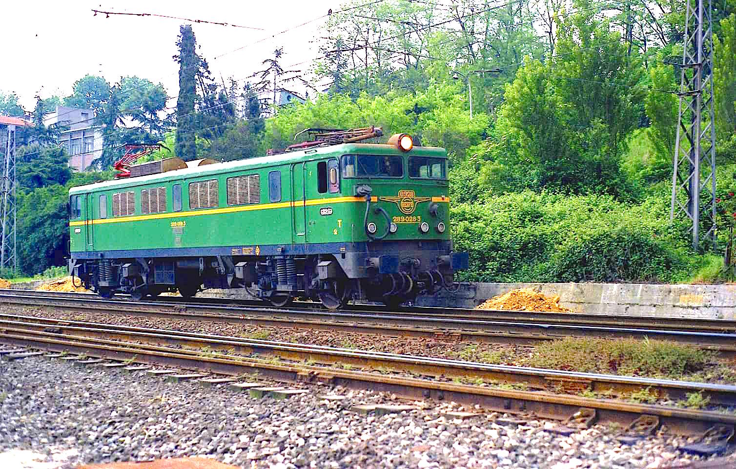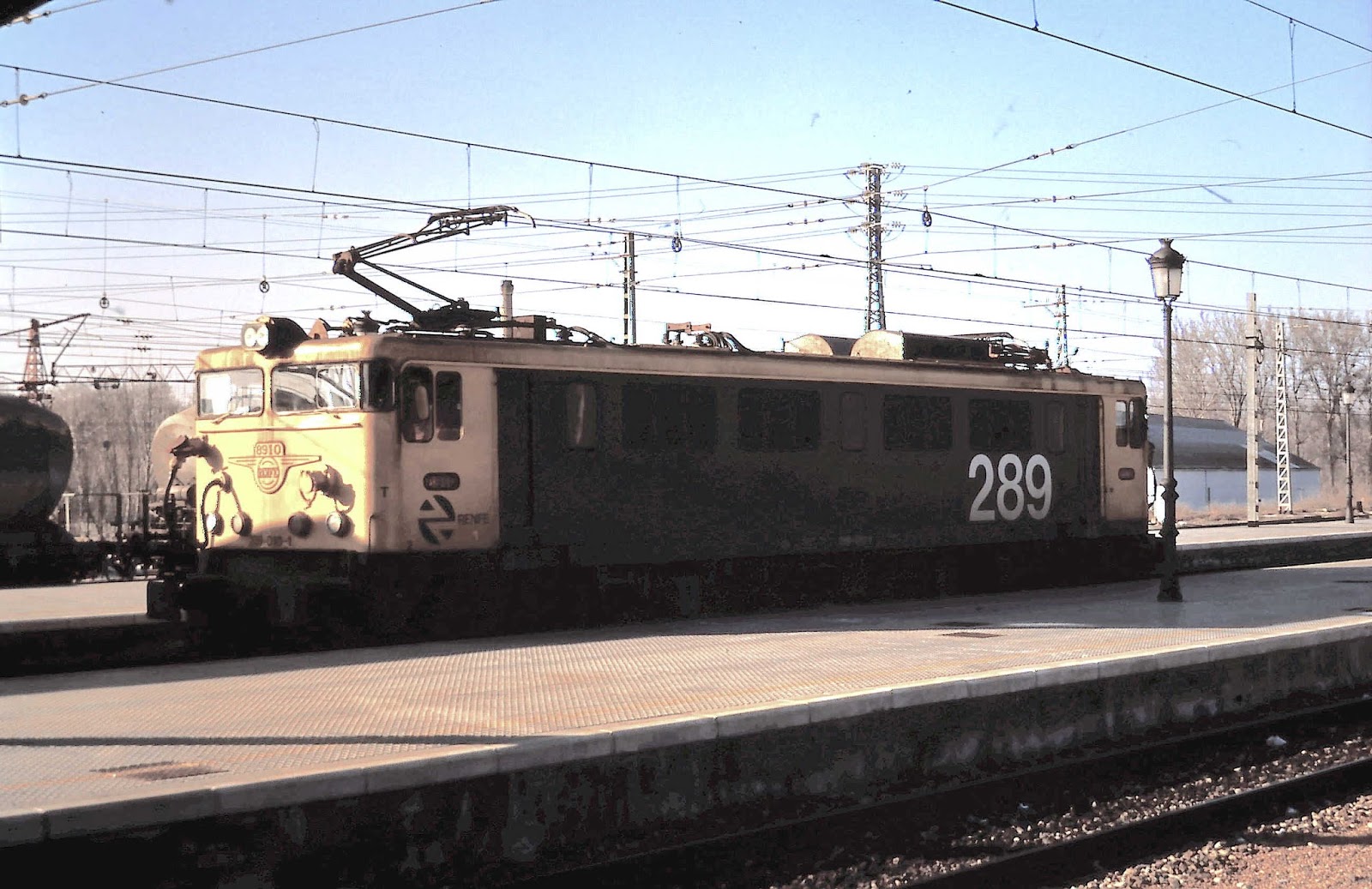 Hace tiempo dediqué una entrada a la serie 279, a cuyas locomotoras denominé cariñosamente como "cajas de zapatos verdes". Aquellas primeras locomotoras japonesas bitensión y con novedosos elementos de tracción que mejoraban mucho su capacidad de arrastre, empezaron a circular en el año 1967. La experiencia fue tan buena y la necesidad de nuevas locomotoras eléctricas de este tipo tan grande, que RENFE adquirió 40 más sólo dos años después. Dado que tenían una mayor potencia (4216 CV de potencia contínua frente a los 3670 de la serie 279), un mayor esfuerzo de tracción (17000 kg respecto a 14000 en régimen de viajeros y 27000 kg respecto a 22500 en el de mercancías) y también una velocidad máxima algo más elevada (140 km/h frente a 130 km/h), constituyeron una nueva serie: la 289 compuesta por cuarenta unidades. Al igual que en el caso de las 279, las dos primeras fueron construidas en Japón por Mitshubisi y las 38 restantes en España por CAF y CENEMESA bajo licencia. Cabe destacar que las cuatro últimas de la serie fueron ya dotadas de freno dual siendo las primeras locomotoras de RENFE que lo trajeron de origen.