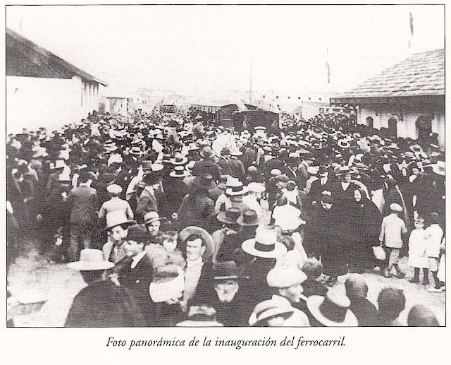 | Otra imagen de la inauguración del ferrocarril. Aparecen los ingenieros que lo proyectaron y distintas autoridades (foto: autor desconocido/Hemeroteca ABC) |