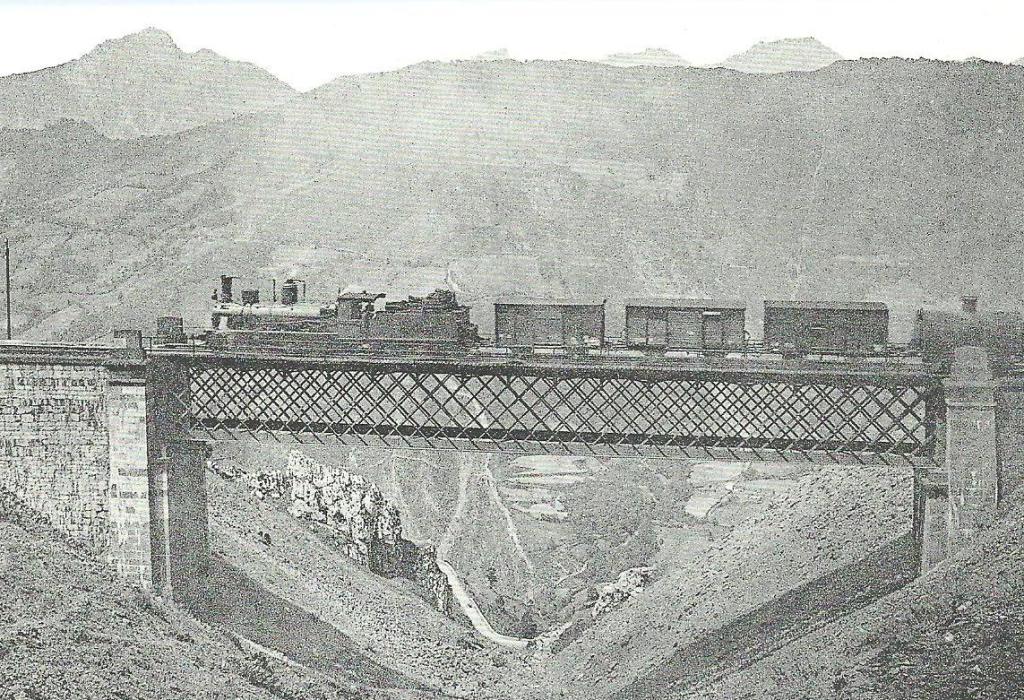 | Otro tren atraviesa el viaducto de Matarredona a principios del siglo XX (Foto: autor desconocido) |
