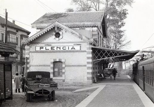 El 28 de abril de 1929 llegaron los primeros trenes eléctricos a Plentzia. Fotografía de Juan Bautista Cabrera. Archivo EuskoTren/Museo Vasco del Ferrocarril