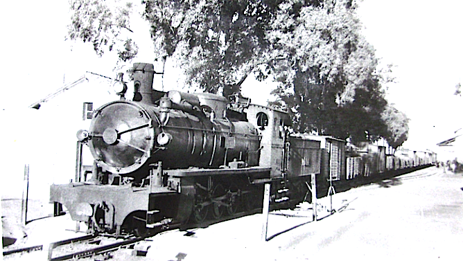| La 150.863 decapod en la estación de Pueblo Nuevo del Terrible en 1960 (Foto: Gustavo Reder) |