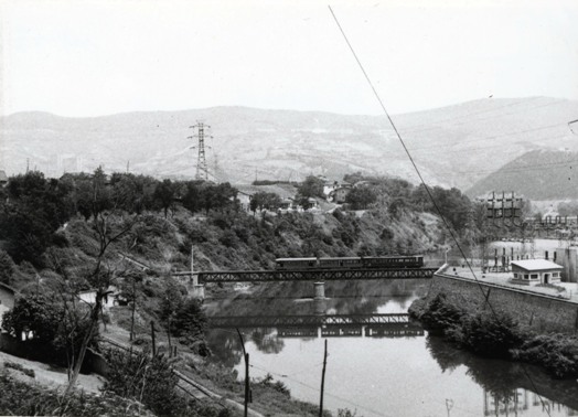Vista del ferrocarril de Matiko a Azbarren, a su paso por Etxebarri. Fotografía de Félix Zurita. Fondo Albert González Masip. Archivo EuskoTren/Museo Vasco del Ferrocarril