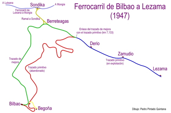 Trazados del ferrocarril de Lezama. Dibujo de Pedro Pintado Quintana