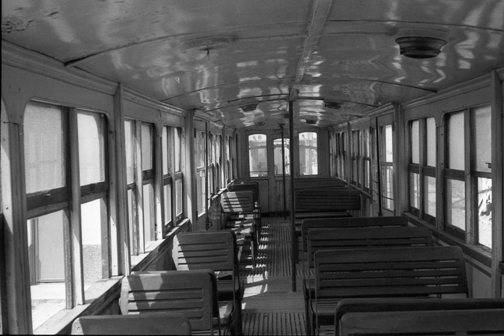 Espartano interiorismo de los coches «empalmats» del «trenet». Fotografía de Juanjo Olaizola Elordi