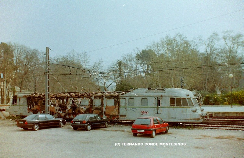 El 9326 en la estación de Castellón. Fue destruido por un incendio en 1997 (Foto: autor desconocido) |