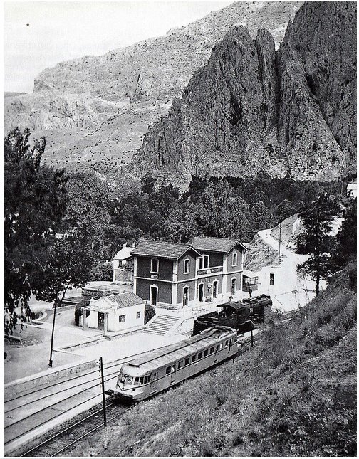 Un ABJ-7 de Sevilla pasando por la estación de El Chorro (Foto: Marc Dahlström) |