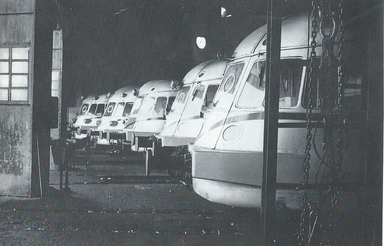 Atractiva e interesante imagen del depósito de Zaragoza en 1973. De izquierda a derecha dos ABJ-7 del segundo grupo, un ABJ-2 y dos ABJ-7 del primer grupo (Foto: Juan Ibañez) |