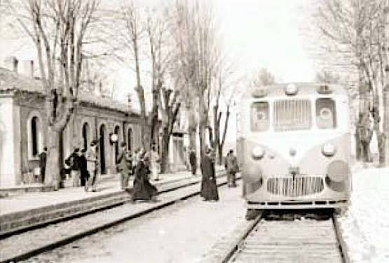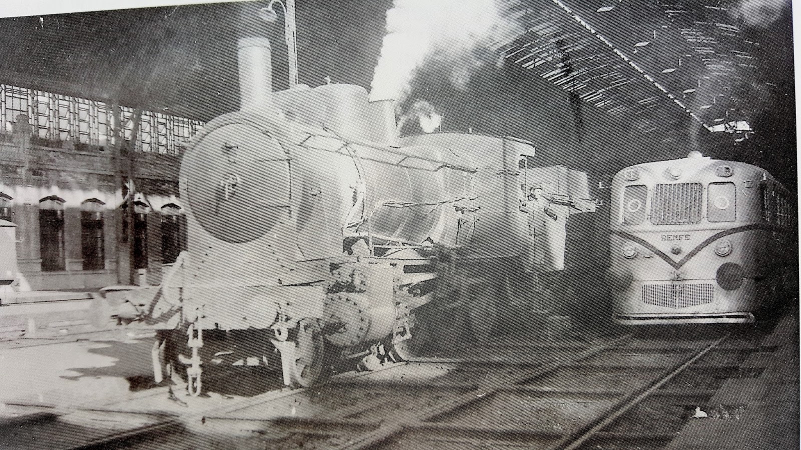 | Un Ganz en la estación de Murcia (Foto: autor desconocido/Museo Vasco del Ferrocarril) |