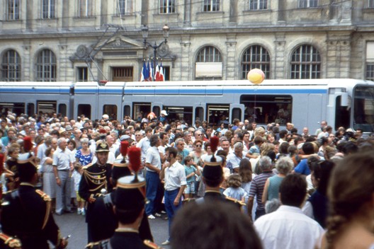 Desde 1978, muchas ciudades han recuperado el tranvía. Inauguración del tranvía de Grenoble (Francia) en 1987. Fotografía de Juanjo Olaizola Elordi