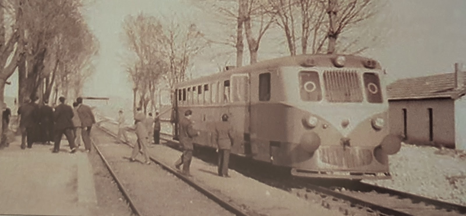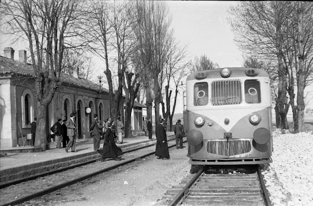 | En la estación de Vellisca, entre Tarancón y Cuenca (AHF/MFM. Autor: Wyrsch) |