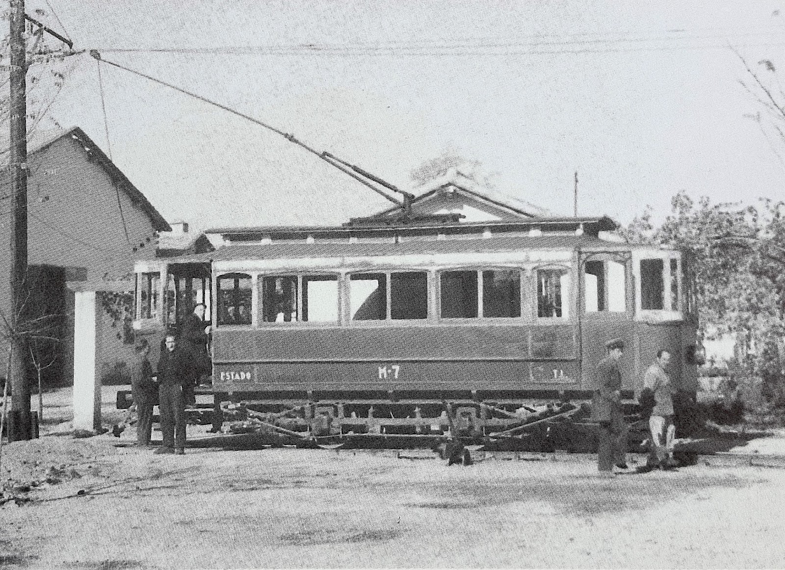 | El M-7 de T.L. (Tranvías de Linares) con un remolque no identificado en 1961 (foto: J. Aranguren) |