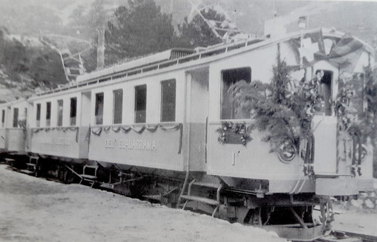 | El nº 1 en Navacerrada, engalanado con motivo de la inauguración de la línea (foto: autor desconocido) |