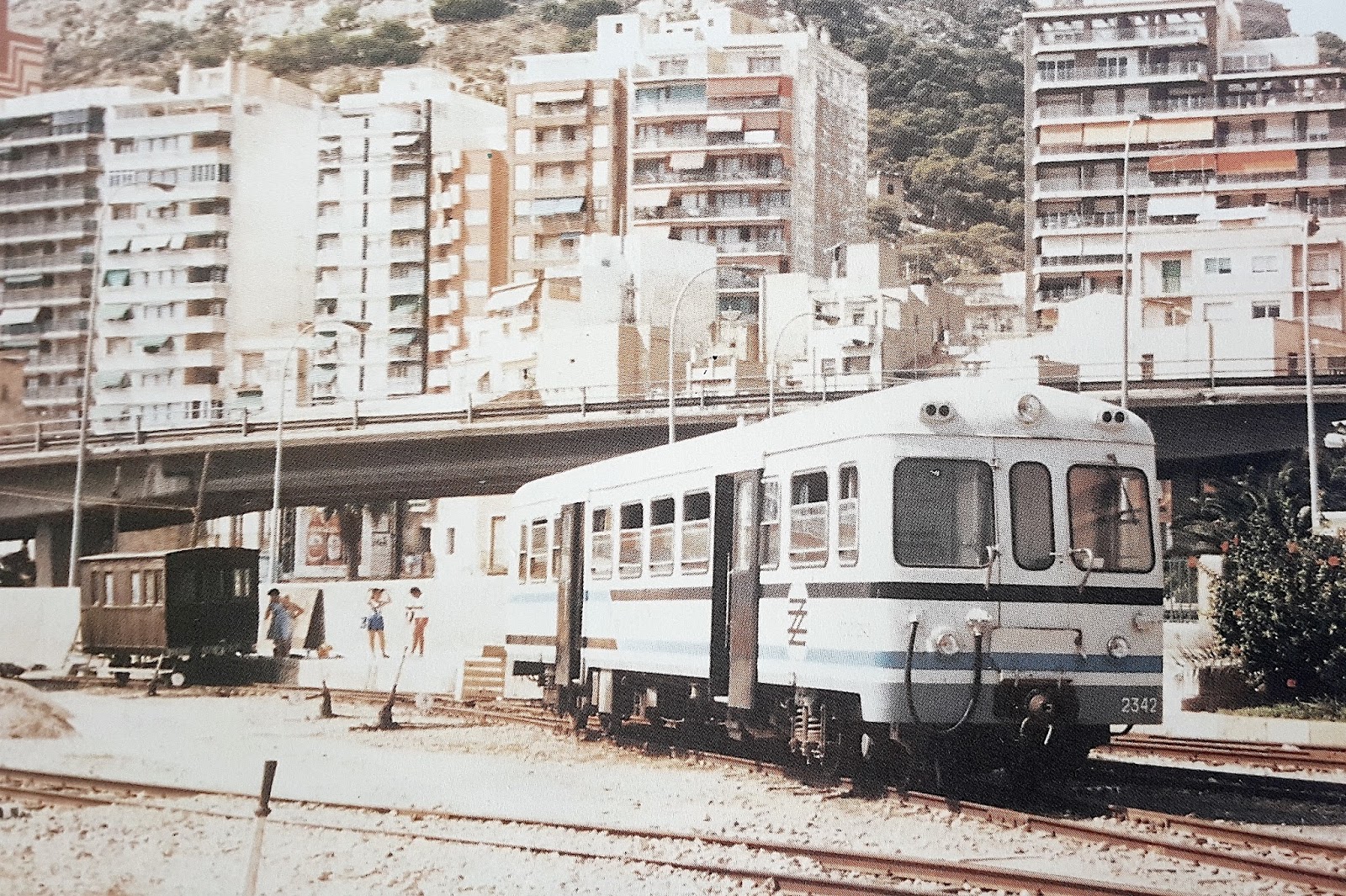 | El 2342 en Alicante, con la librea típica de esta zona en crema, azul y negro (foto: autor desconocido) |