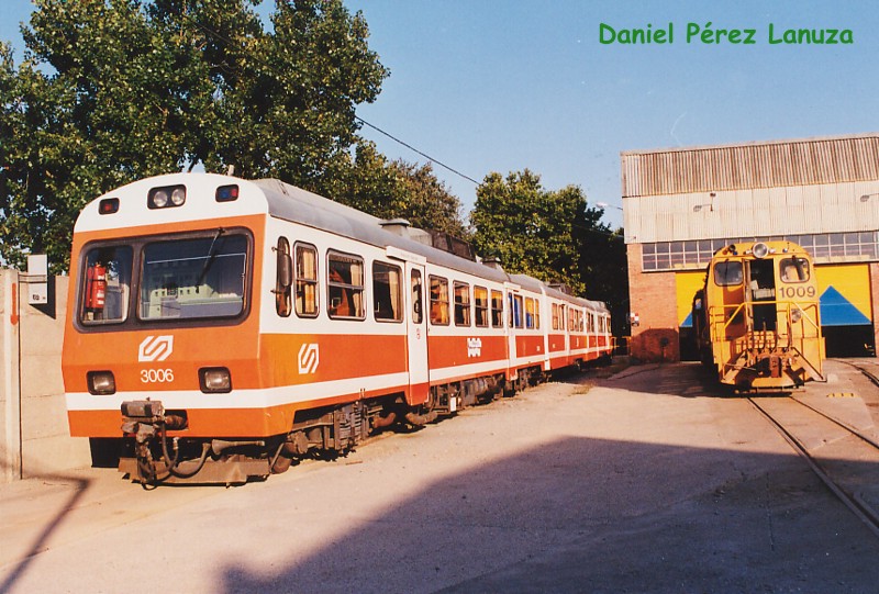 | La unidad 3005-4001-3006 de FGC formada por dos automotores MAN y un Ferrostaal desmotorizado (foto: Daniel Pérez Lanuza |