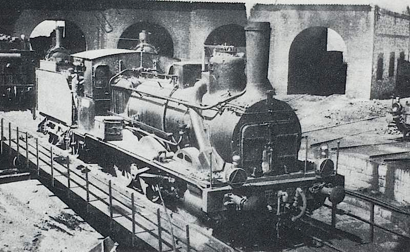 | Una locomotora de esta serie fotografiada en Ripoll en los años 50. (foto: autor desconocido) |