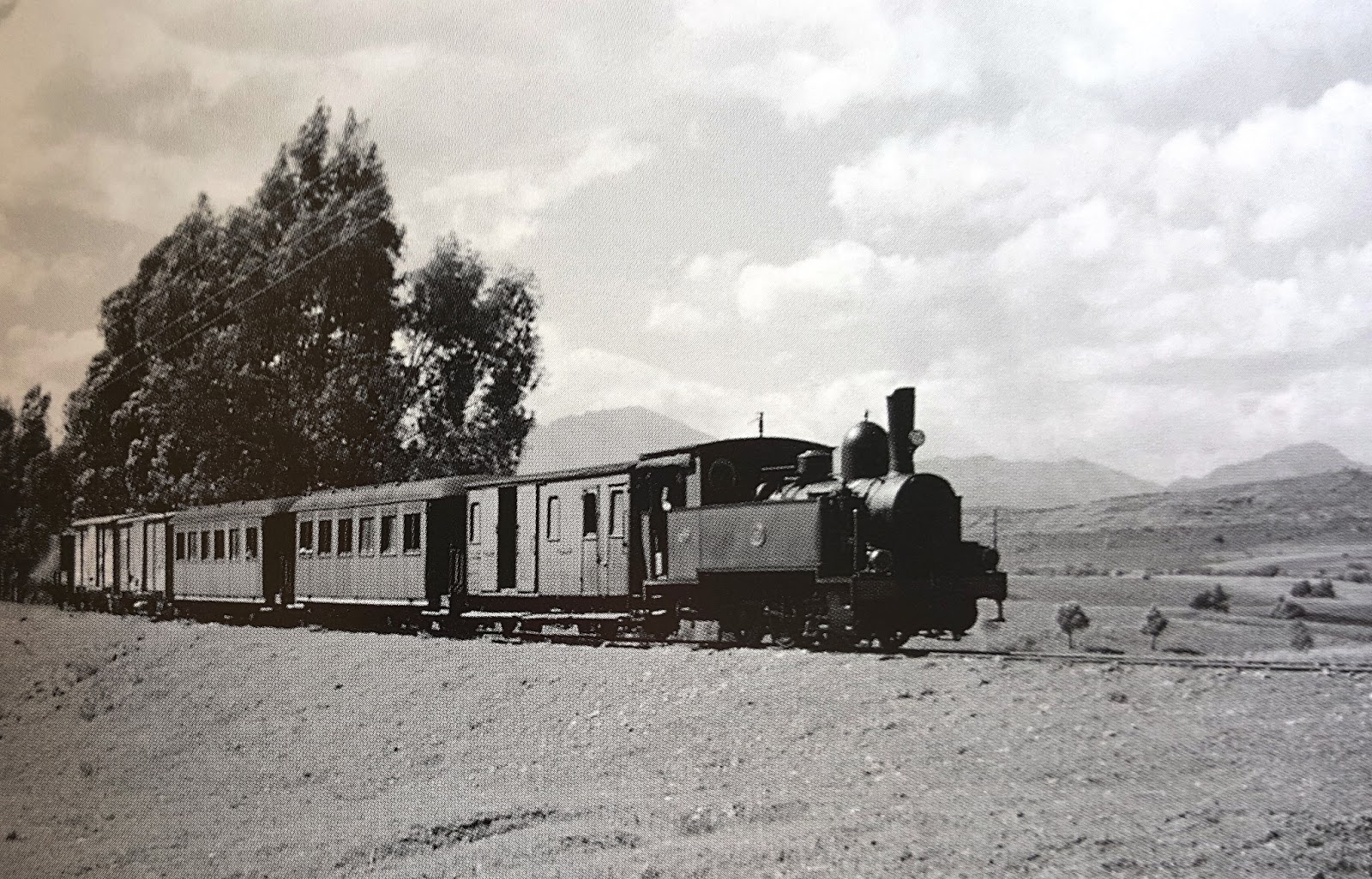 | Otra preciosa y bucólíca imagen del "Tren de Coín" tomada del libro "El tren Coín-Málaga"). |