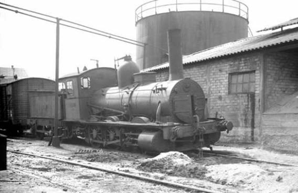 | Una antigua pero muy interesante imagen de la 402 "Tarancón" del Aranjuez-Cuenca, ya 443 en M.Z.A. (foto: autor desconocido/ del libro "Locomotoras de M.Z.A. de F. Fernández Sanz) |