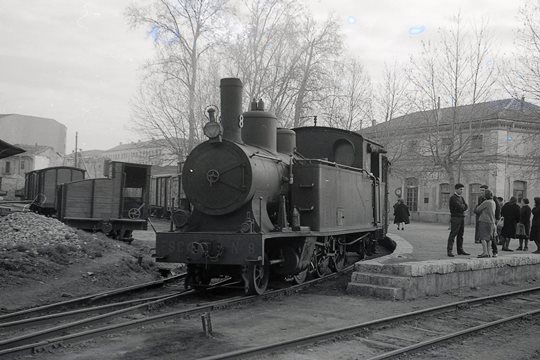 Una locomotora de vapor maniobra en la estación de Valladolid-San Bartolomé. Fotografía de Trevor Rowe. Archivo Euskotren/Museo Vasco del Ferrocarril
