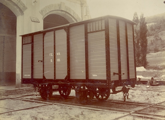 Vagón cerrado construido en Beasain para el Ferrocarril Económico de Valladolid a Medina de Rioseco. Archivo Euskotren/Museo Vasco del Ferrocarril