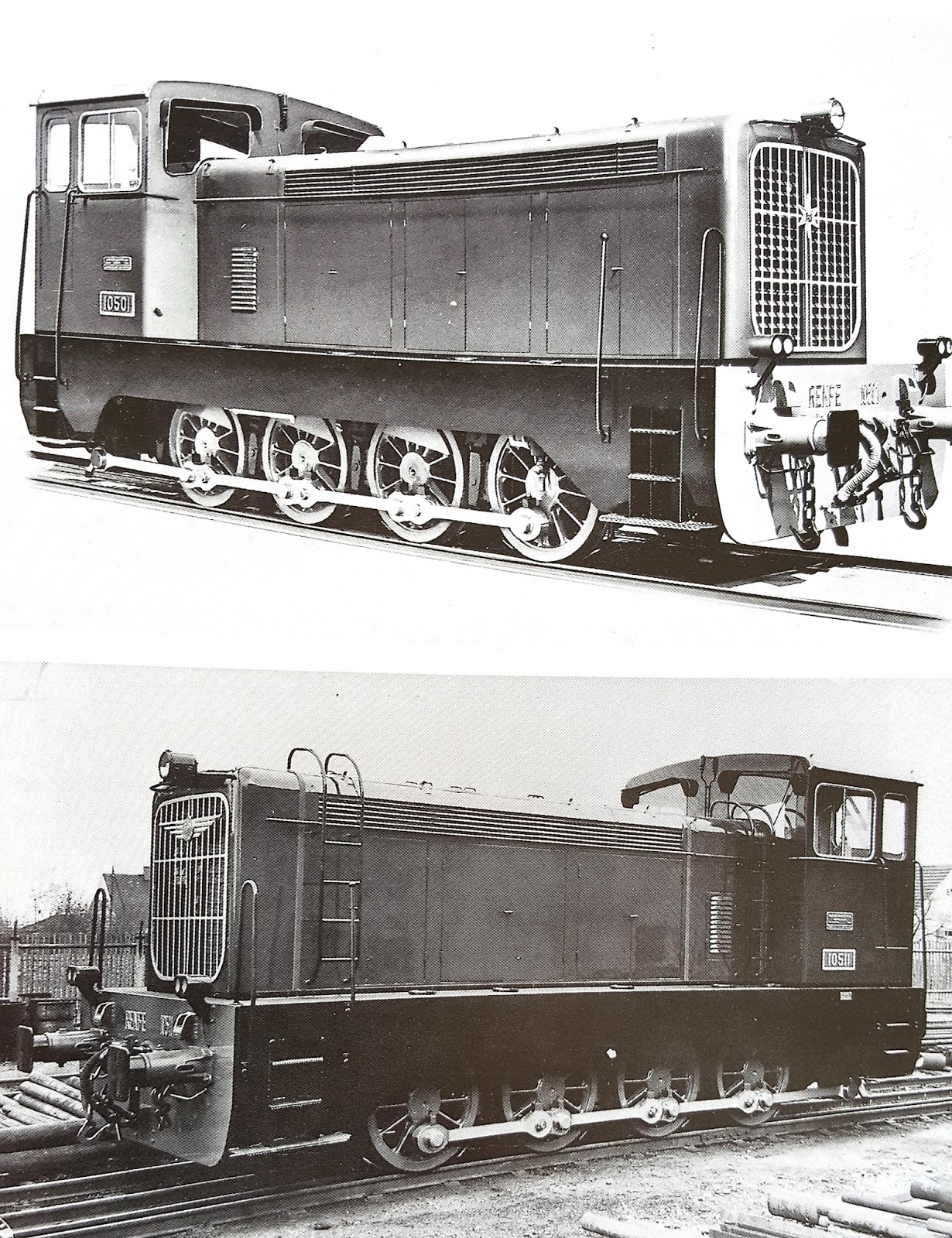 | Fotos de fábrica de los dos lotes de "diez mil quinientas": arriba las fabricadas por Henschel y abajo las de Krauss Maffei (Foto: colección Javier Aranguren) |