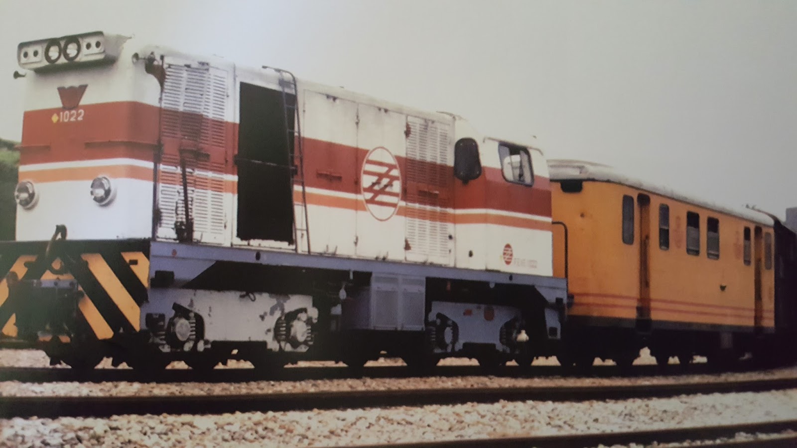 En este caso el tren postal es arrastrado por la 1022 con la librea de FEVE de los años 80 y algunas reformas (foto: Joan Acón) |