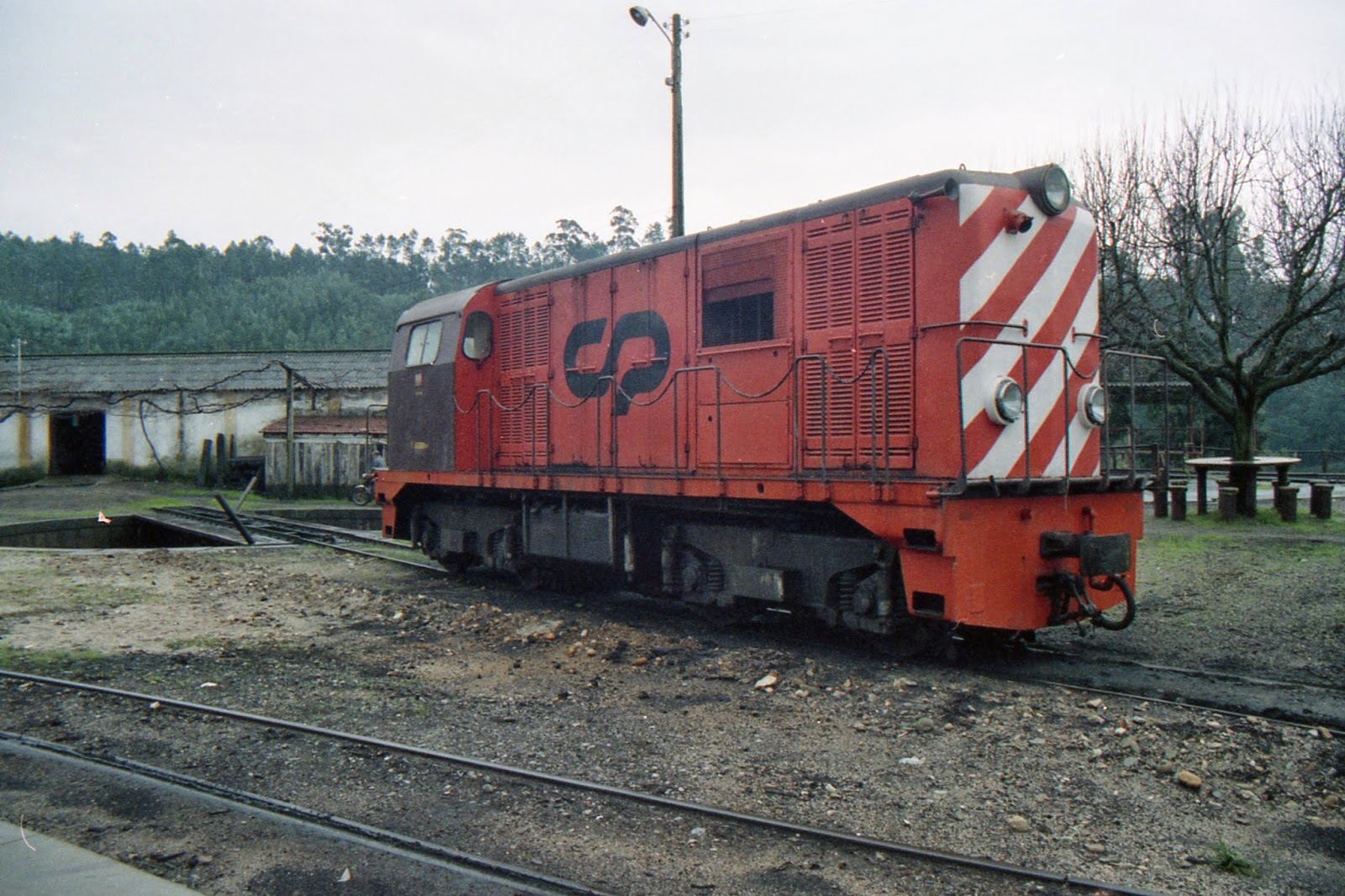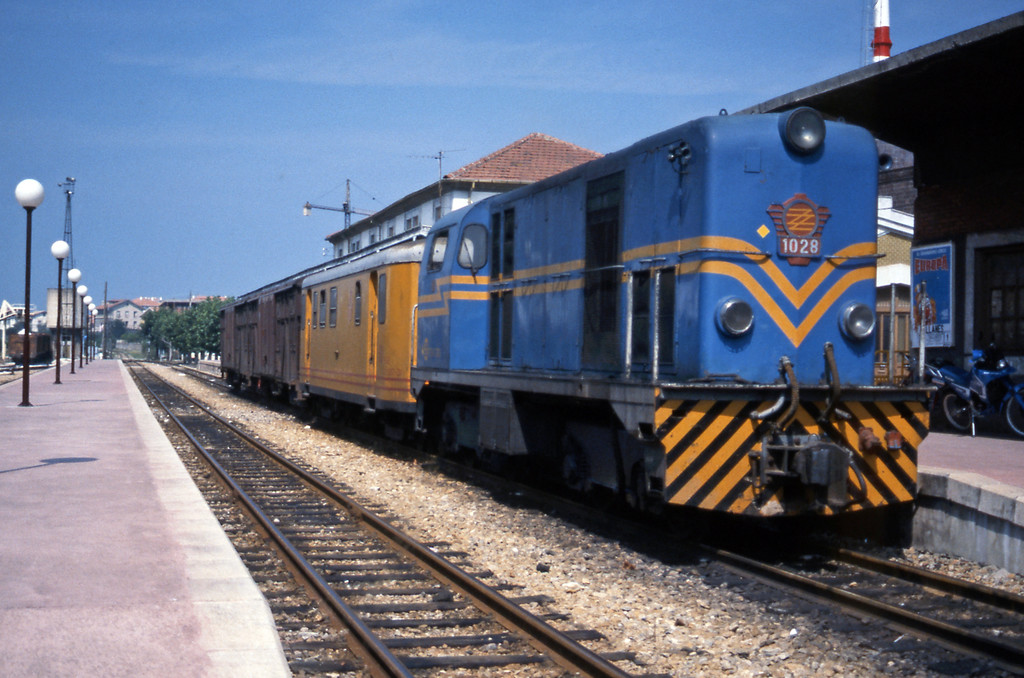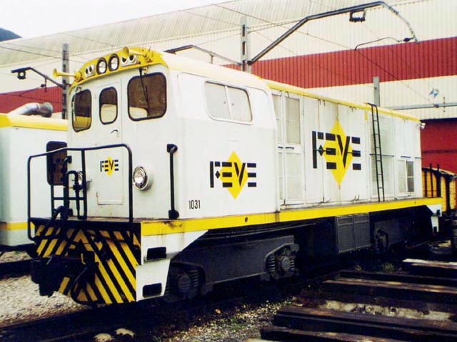 La 1031 de La Robla, ahora ya con el anagrama de FEVE y la librea típica de los años 90, fotografiada en Balmaseda (foto: autor desconocido) |