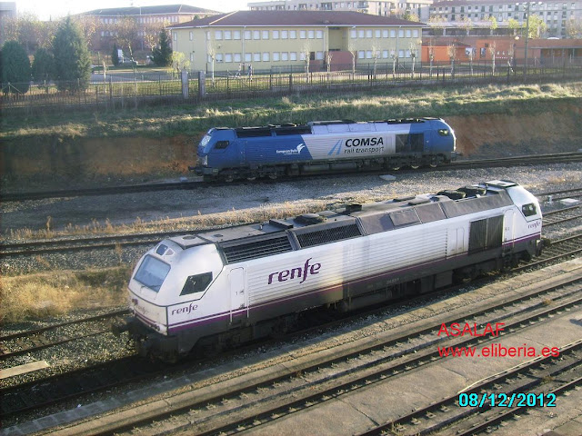 Estacionada en Salamanca, la 334-005 (Euro 3000) ve pasar a la 335-002 (Euro 4000) (Foto: ASALAF) |