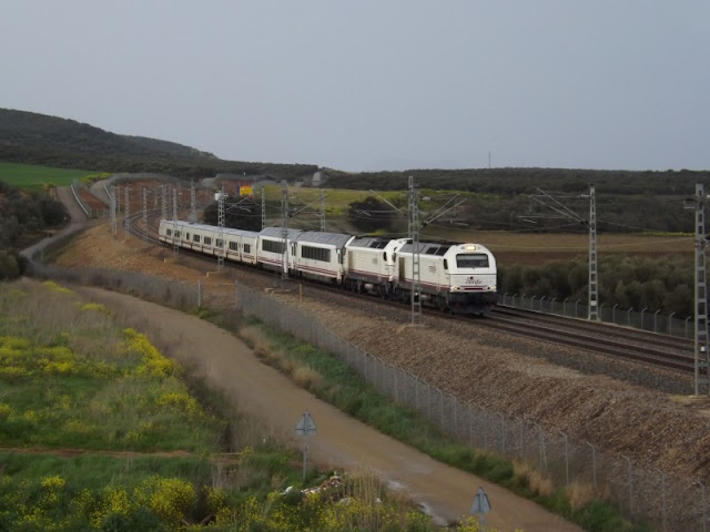 Una doble de 334 desciende desde Despeñaperros en cabeza del talgo reforzado Madrid-Almería (foto: educarmona) |
