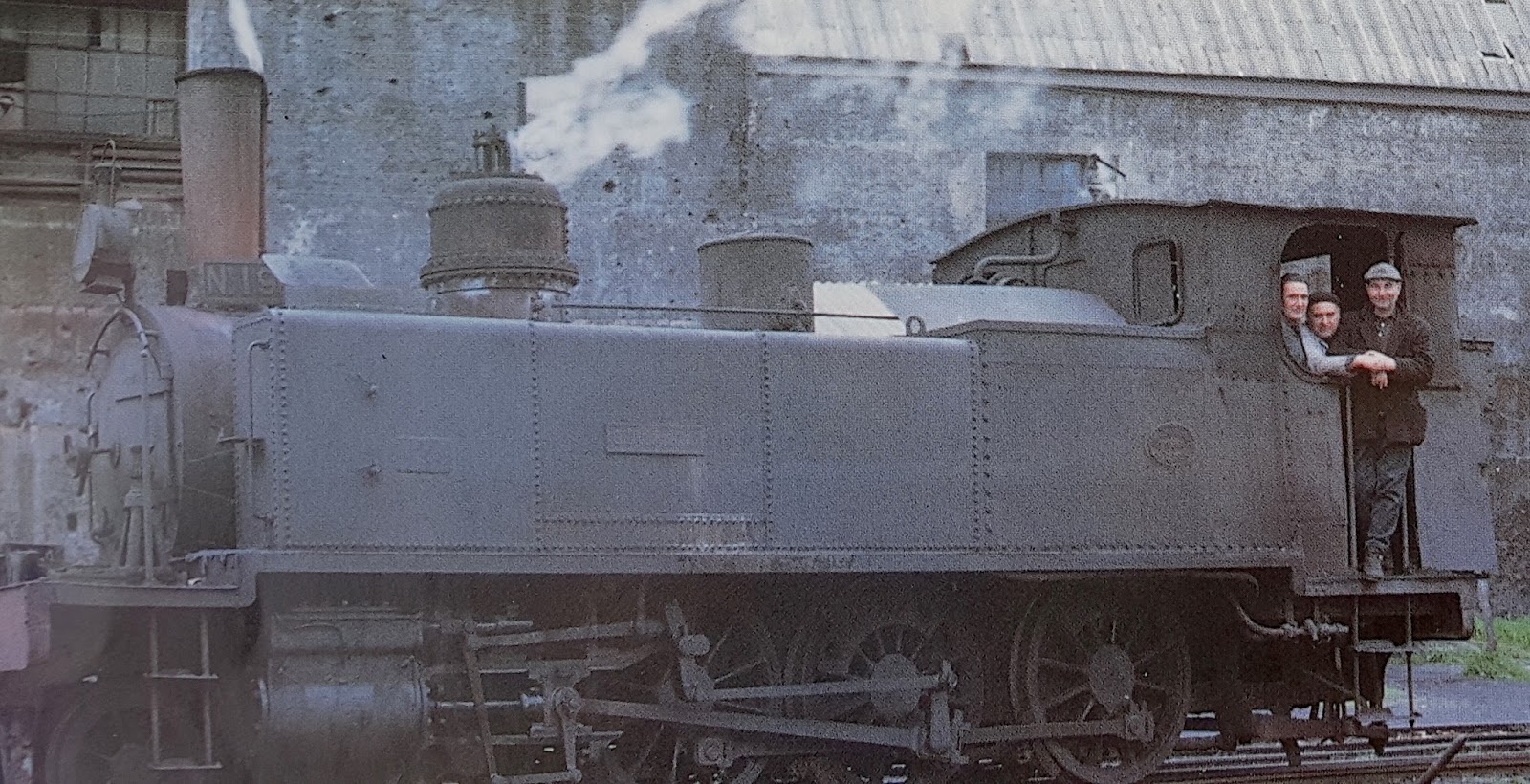 | En esta foto tomada en 1961 por Jeremy Wiseman puede verse a la locomotora nº 1 "Almodovar del Campo" maniobrando en Peñarroya. |