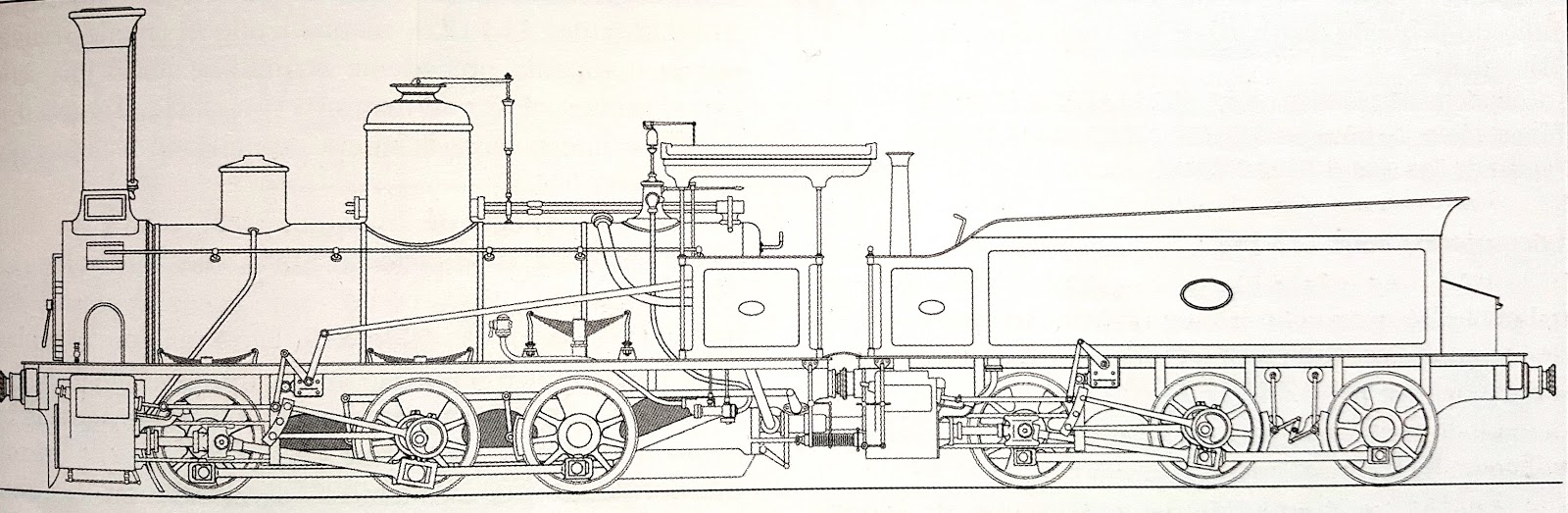 No le fue difícil a la compañía conseguir esas locomotoras y quizás esta facilidad influyó también en la decisión tomada. Como se ha comentado en alguna otra ocasión el ferrocarril de Ciudad Real a Badajoz había adquirido un número desproporcionado de locomotoras de este tipo y buscaba su venta a otras compañías. También, como ya vimos en otra entrada, cuatro de ellas fueron adquiridas por el ferrocarril de Zaragoza a Pamplona. Pues bien, otras diez fueron adquiridas por el Córdoba a Belmez. Cabe añadir que, además, eran locomotoras bien conocidas en la compañía por haber sido alquiladas algunas de ellas para la construcción de la línea. La adquisición tuvo lugar en 1872 y probablemente recibieron la numeración 113 a 122 manteniendo la original de su compañía de procedencia. Eran locomotoras construidas por Cail con 602 CV de potencia y un esfuerzo de tracción de 8125 Kg. Tenían la particularidad de que el forro de la caldera era de latón pulido y por eso las llamaban "las doradas". Esta denominación se la comunicó a Fernández Sanz un veterano ferroviario de Málaga; sin embargo, no parece que en RENFE fueran conocidas popularmente así.
