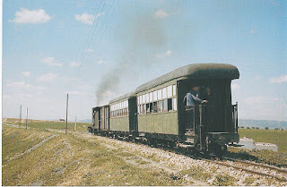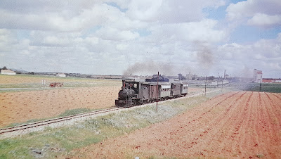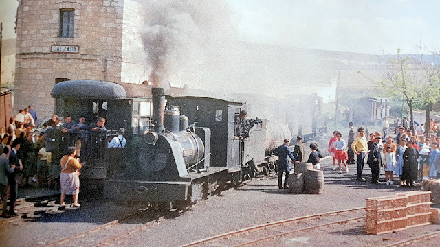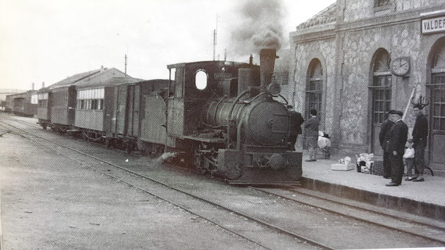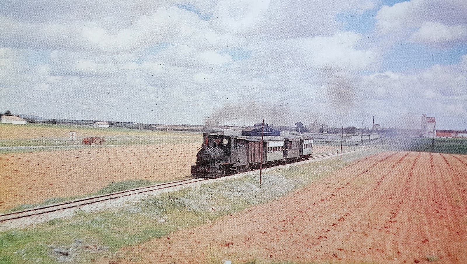 | Imagen típica del "trenillo" saliendo de Valdepeñas (Foto: autor desconocido) |