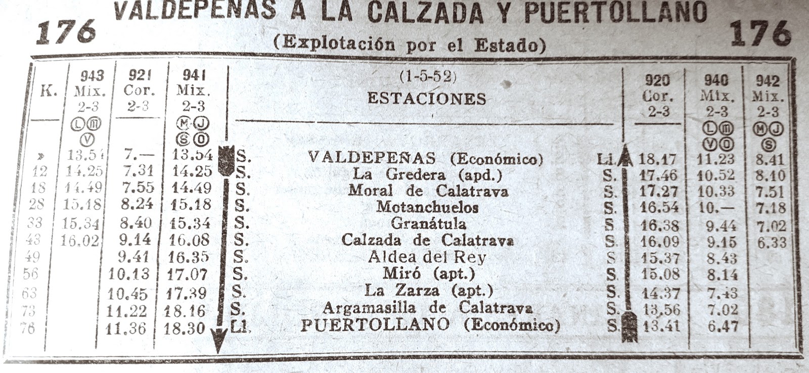 Así mismo, también llegó un tractor diesel procedente de aquella misma línea y algunos otros coches de viajeros. Por lo que respecta al tractor era -y parece que sigue siendo- una muestra muy interesante ya que, fabricado por la Metalúrgica San Martín en 1935, fue el primer vehículo de este tipo construido en España y también el primero que tuvo EFE. No parece que se adaptó mucho a la línea -sólo era conveniente su circulación entre Valdepeñas y Calzada por las mayores curvas desde ahí hasta Puertollano- y al cierre de la misma fue llevado a trabajar en el levante de la línea de Sant Feliú de Guixols a Girona.