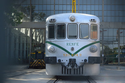 | Un ejemplar de esta serie antes de su reforma pero ya con una modificación en la parte baja del frontal en el depósito de Valencia (Foto: autor desconocido/a través de Javier Aranguren) |