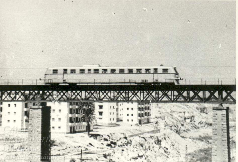 | Un Ganz atravesando un viaducto en Elche (Foto: autor desconocido) |