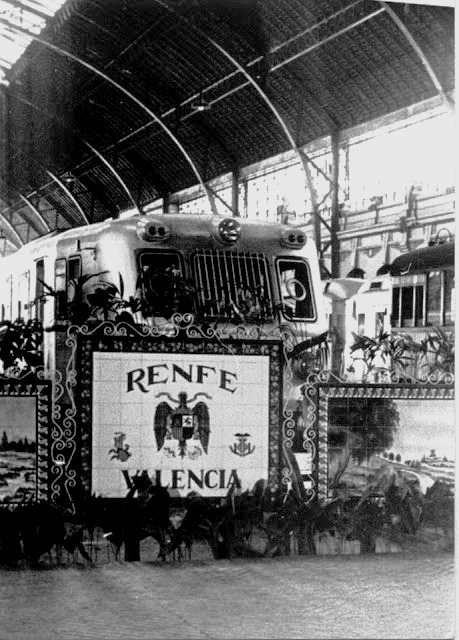 | Una composición doble de Ganz en la estación de Valencia. Año 1939 (Foto: Del libro Automotores Españoles) |